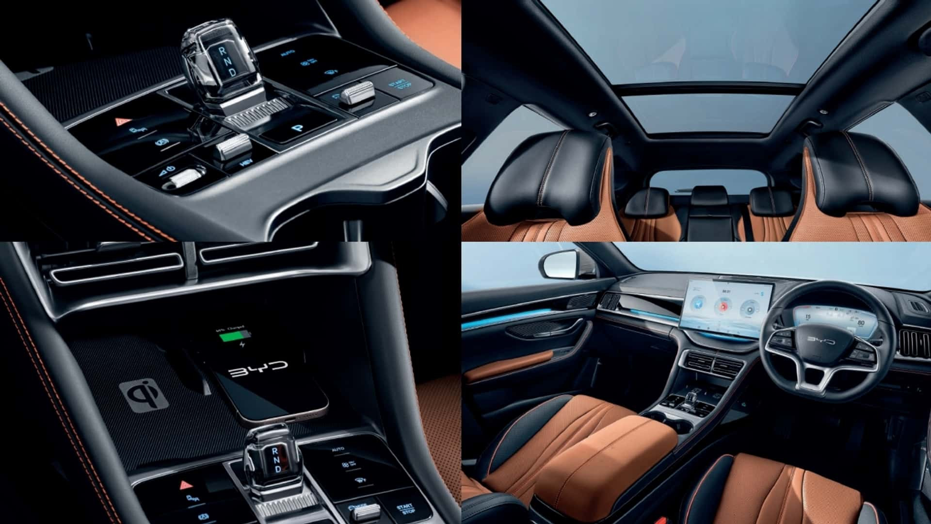 O interior do Song Plus transmite sofisticação: telas grandes, bancos confortáveis e materiais de boa qualidade. O pacote de assistência inclui piloto automático adaptativo, centralização em faixa, câmera 360° com visão transparente do assoalho e sistemas de alerta de tráfego cruzado e ponto cego.